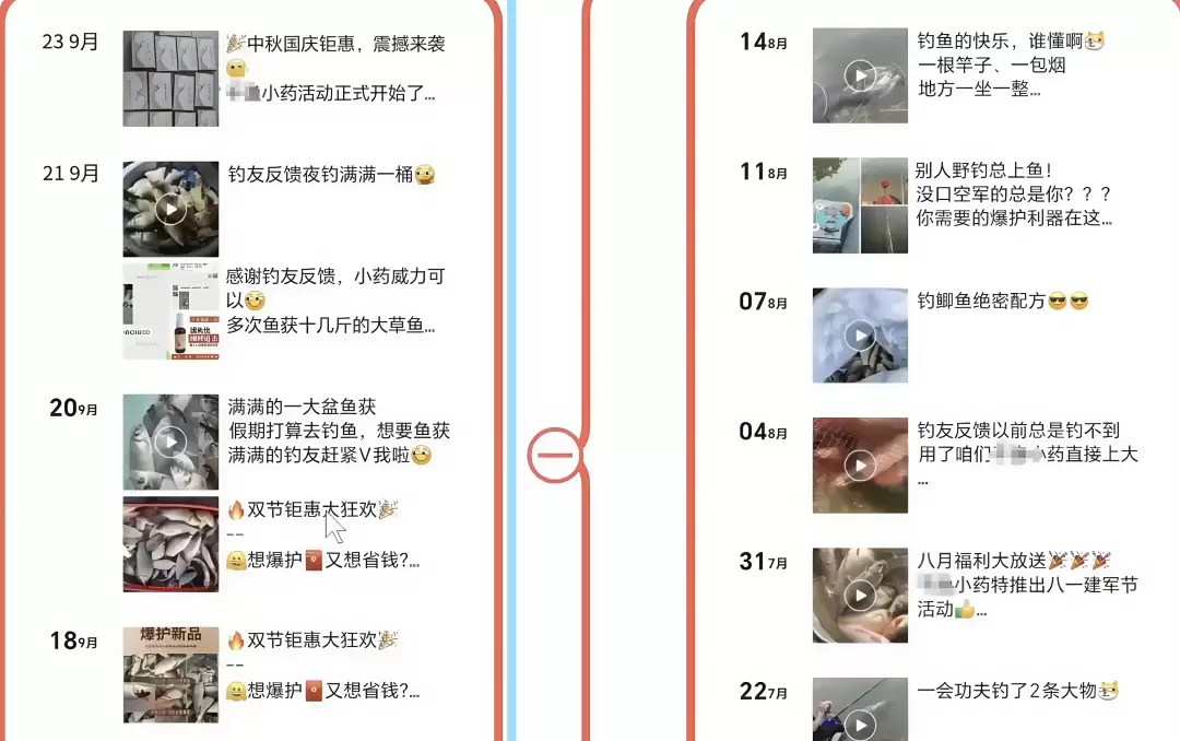 形式很灵活,可以是晒爆护图、做小药排行榜、写钓鱼经验,也可以是分享所谓的“秘方”。