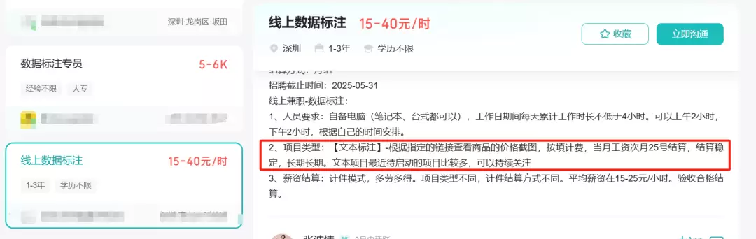 我也去试去BOSS直聘搜了一下,关键词搜“数据标注员”、“信息采集员”这些,工资一般标个四五千,也有高一点的,但那种大多也只是写得好看。